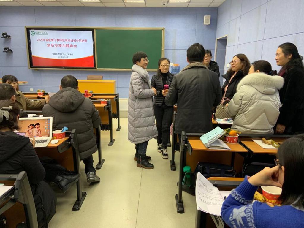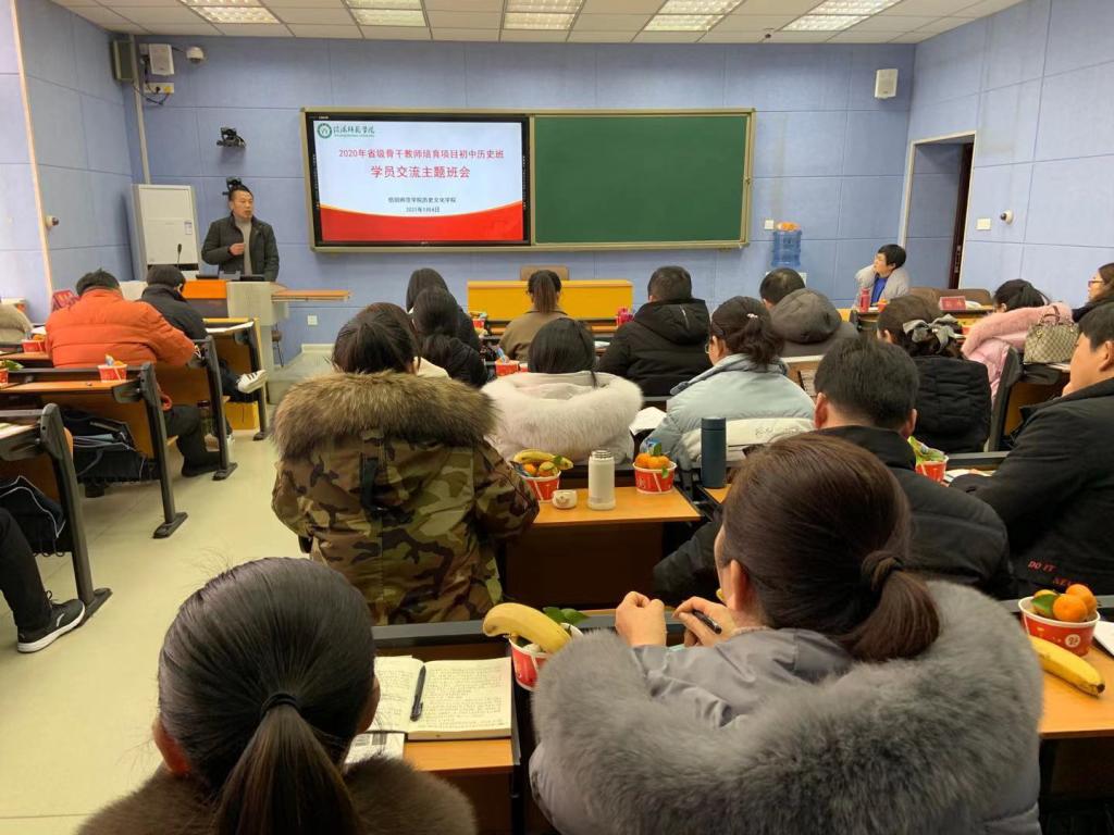 1月4号下午,2020年度“省级骨干教师培育项目”(初中历史)学员交流主题班会在人文楼706会议室召开。班会由tyc522cc太阳成集团历史系主任兼本次培训学科班主任孙炜主持。