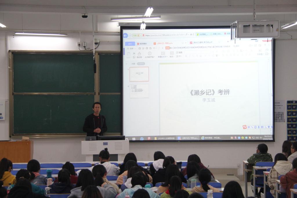 10月23日下午,我院李玉诚博士在社科楼212教室作了主题为“《濑乡记》考辨”的人文视野讲座。2018级历史学和人文教育班的百余名同学听讲。