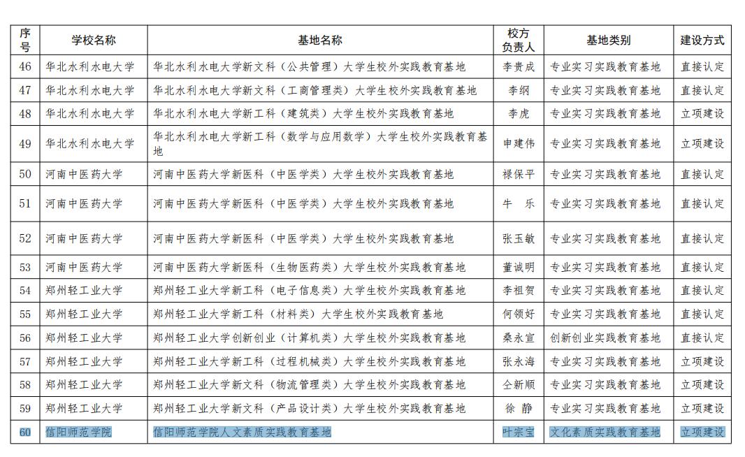 日前,河南省教育厅公布了2022年度本科高校大学生校外实践教育基地公布,我院依托信阳博物馆联合申报的信阳师范学院人文素质实践教育基地获批为立项建设项目。