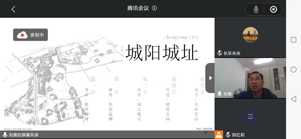 刘主任从“考古——惊世发现”“研究——历史追溯”“共守——国之瑰宝”“共建——遗址公园”“共享——美好生活”五个方面对城阳城大遗址的发掘与保护做了讲解分析。刘主任在考古篇讲解了城阳城遗址的惊世发现:“乐-青铜编钟”“食-青铜扁壶”“居-流彩漆器”“卫-青铜宝剑”;在研究篇分析了城阳城遗址的轮廓、文献史料、历史沿革;共守篇中,刘主任从创新机制,强化措施,常态长效三方面讲解了各级政府保护城阳城遗址所采取的措施,健全三级文物保护网络,强化三防措施管理,共同守护国之瑰宝;在共建篇,他进一步强调了规划先行,文化引领,共融发展,共建遗址公园等内容;在共享篇中,刘主任展现了城阳城址以文旅交融,生态宜居,乡风文明,耕读传家的现代新貌,当地群众已经形成了保护文物,珍爱家园、保护好大遗址就是守护好精神财富和价值财富的良好氛围。最后,刘勇老师为我们播放了城阳城遗址发掘专题片,进一步加深了同学们对城阳城址的认知和了解。讲座最后,孙炜老师进行了总结,她指出城阳城遗址是国家第五批重点文物保护单位,其文物发掘及大遗址公园建设在全国卓有影响。城阳城址是展示战国时期楚文化的重要遗址,其建设经验深刻践行了习近平总书记“让文物活起来”的文物保护与发展理念。