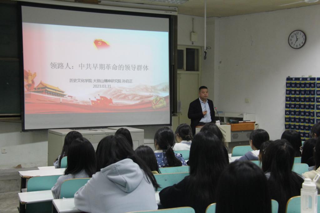 3月31日晚上,我院孙启正博士应邀在人文楼609教室为本科生作了题为《领路人:中共早期革命的领导群体——以大别山三次武装起义为例》的学术讲座,我院历史学专业本科生聆听了此次讲座,本次讲座由孙炜副院长主持。