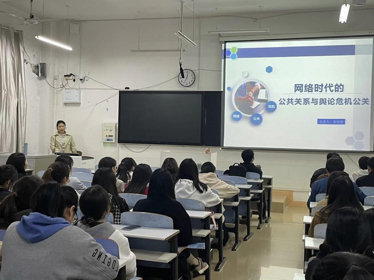 11月9日晚,为加强本科生专业素养教育,进一步提升学生提出问题、解决问题的科研能力,我院邀请张珍珍老师在人文楼705教室作了题为“网络时代的公共关系与舆论危机公关”的讲座,学院全体文管专业同学到场听讲。