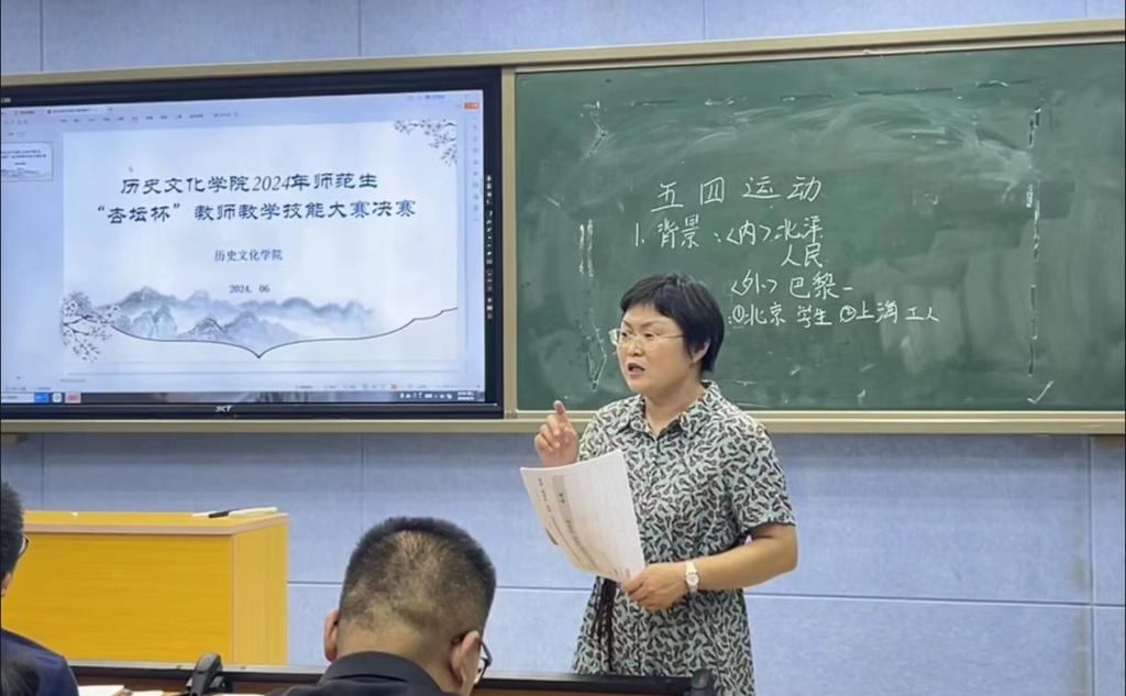 为提高历史学师范生教育教学技能,更新教学理念,提高综合素质和实践能力,6月11日下午,tyc522cc太阳成集团在人文楼706教室举办了2024年师范生“杏坛杯”教师教学技能大赛决赛。宋基中学青年教师温二虎,学院副院长孙炜、李志坚,任课老师张乐锋、李海霞、张珍珍等6名教师担任评委,8位同学参赛,2023级本科生到场观摩了此次比赛。