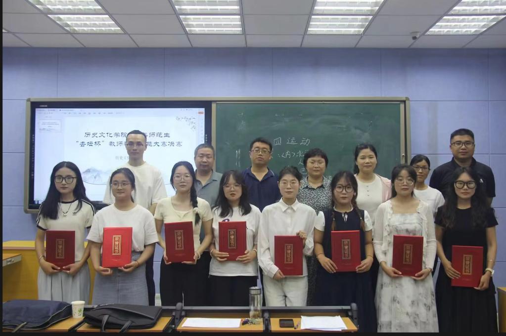 经过激烈的角逐和综合测评,一等奖、二等奖、三等奖的选手已见分晓。其中,邹馨剑同学凭借出色的综合素养荣获一等奖,石玮洁、王若冰、李俊慧3位同学荣获二等奖,陈梦莹、潘越、赵慧、尚文静4位同学荣获三等奖。参赛选手用精彩的课件和精心的教学设计呈现出了生动活泼的课堂效果,选手们的精彩表现也获得了评委和观众的一致好评。比赛结束后,孙炜副院长对此次比赛进行了点评,鼓励大家牢固树立专业意识,加强师范技能训练,为成长为一名优秀的中学历史教师而努力学习!