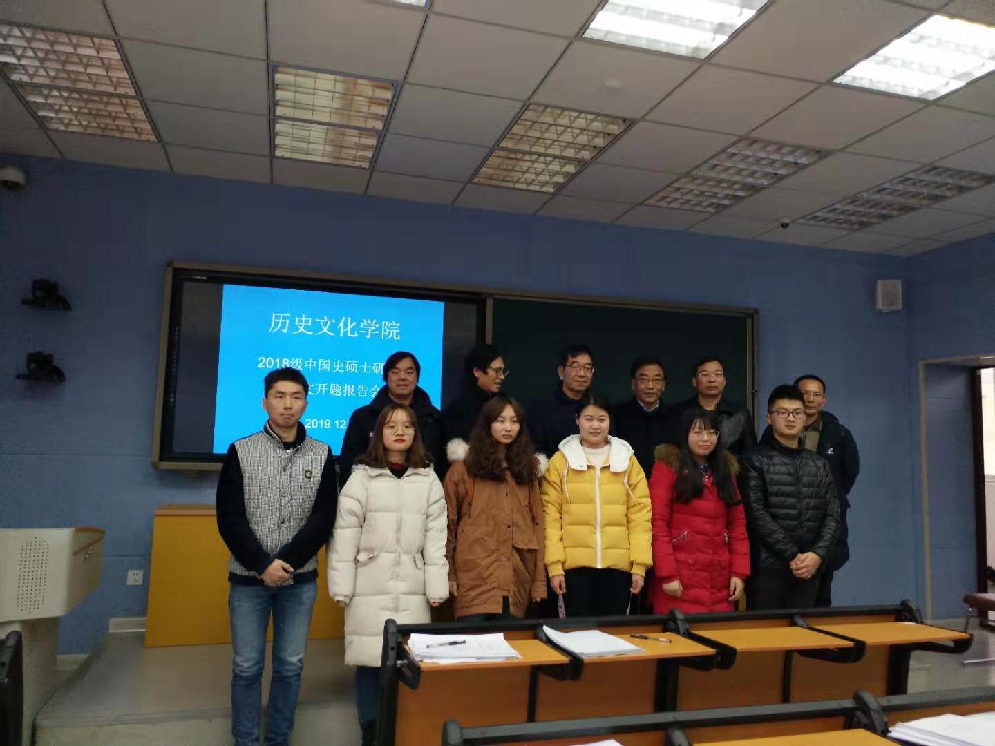 2019年12月17日,我院在人文楼706教室举行2018级中国史硕士研究生学位论文开题报告会。河南大学程民生教授主持开题报告会,导师组的尹全海教授、金荣权教授、田青刚教授、叶宗宝副教授、贺辉博士、肖红兵博士、纪昌兰博士等教师共同组成开题小组。2018级中国史和2019级全体研究生参加了报告会。
