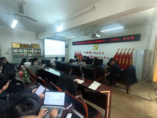 1124日下午,我院张乐锋博士在人文楼805教室做题为“清代汾泉河流域的水利建设与地域纷争”的学术讲座我院青年教师和全体研究生参与会。