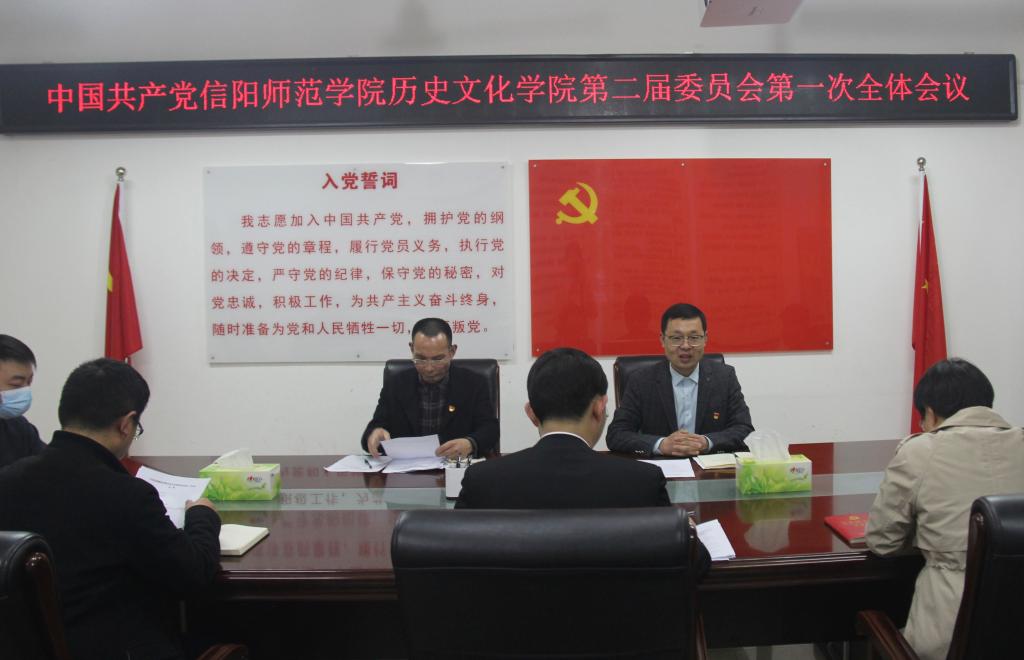 3月15日下午,在中共信阳师范学院tyc522cc太阳成集团委员会换届选举党员大会之后,中共信阳师范学院tyc522cc太阳成集团学院第二届委员会第一次全体会议在人文楼805会议室召开,tyc522cc太阳成集团新一届党委全体委员参加会议。院党委书记李辉主持会议。