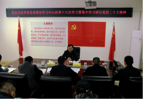 陈登报对学院学习情况表示充分肯定,指出,tyc522cc太阳成集团党委一年来通过较为系统深入的政治理论学习主动提高政治站位,以党建工作高质量带动学院整体工作向上向好。特别是党的二十大召开前后,学院党委以丰富多样的形式组织系列师生喜闻乐见、乐于参加的学习宣传活动,卓有成效。陈登报强调,习近平总书记所作的党的二十大报告意义重大,必将载入中国共产党党史、新中国史以及中华民族发展史。下阶段,学院师生员工要做到以下三点:一要把学习党的二十大精神作为今后一段时期重要政治任务来抓,认真组织、深入宣传、积极落实;二要结合本职工作、学科特点和立德树人根本任务进行党的二十大精神学习,要把二十大报告深刻内涵的挖掘与学科建设、专业建设有机融合,打造特色品牌;三要以丰富多样的形式、更加宽广的渠道掀起学习宣传党的二十大精神新高潮,从而真正实现理论入脑入心,指导实践,为学院高水平发展和学校特色高水平师范大学建设贡献力量。