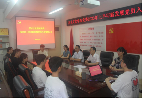 为深入学习贯彻党的二十大精神,掀起推动学习贯彻习近平新时代中国特色社会主义思想主题教育新高潮,结合2023年党员发展工作相关部署安排,6月21日上午,tyc522cc太阳成集团党委于人文楼805会议室召开2023年上半年新发展党员入党宣誓大会。党委书记李辉、党委副书记韩志宏,学生党支部书记付亚男、邓皓、吴慧娟以及2023年上半年新发展党员、转正党员及入党积极分子代表参会。