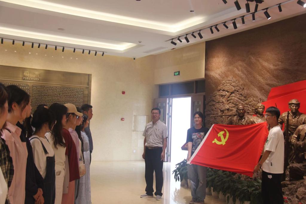 在参观鄂豫皖苏区首府革命博物馆时,师生党员深入领会习近平总书记2019年9月16日参观考察鄂豫皖苏区首府革命博物馆时的重要讲话精神,认真聆听讲解,仔细观看先烈浴血奋战的珍贵史料和图片资料,近距离感受他们不怕困难、勇于牺牲的大无畏精神,亲身感受革命先辈为了祟高的共产主义理想,敢于斗争、不惧牺牲的高尚品质,切身领略学习了大别山精神,接受了一次难忘的精神洗礼。随后,同志们面对鲜红的党旗,高举右拳,庄严宣誓,再次重温入党誓词。