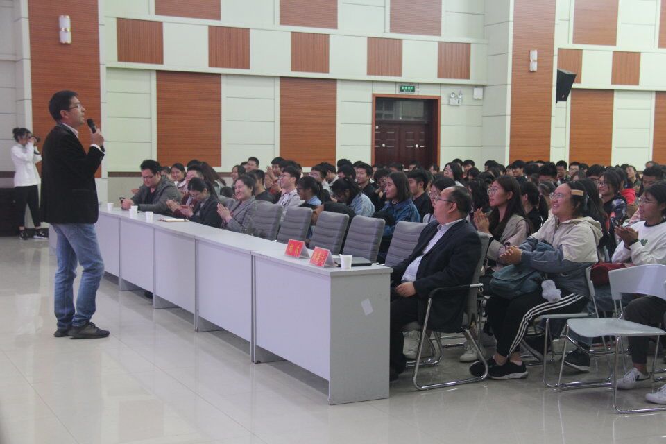 胡波在开讲前以幽默诙谐的语言调侃道“在场鼓掌的手都是高尚的手”,极大地调动了在场学生的积极性。他提出,大学四年是人生旅程的一部分,在大学期间需要做到四点,一是“一条线”,即不论结果如何我们都要守住做人的底线;二是“两个人”,即处理好自己与别人关系,时刻牢记受人之托,忠人之事,要能屈能伸;三是“三味药”,即善于从失败中寻找经验、学会培养兴趣、独立做好自己的事;四是“四句话”,即不论何时都要相信自己、自强不息、变通不已、为善努力。