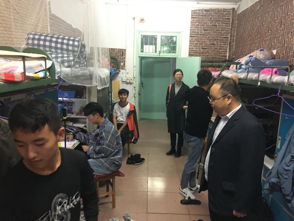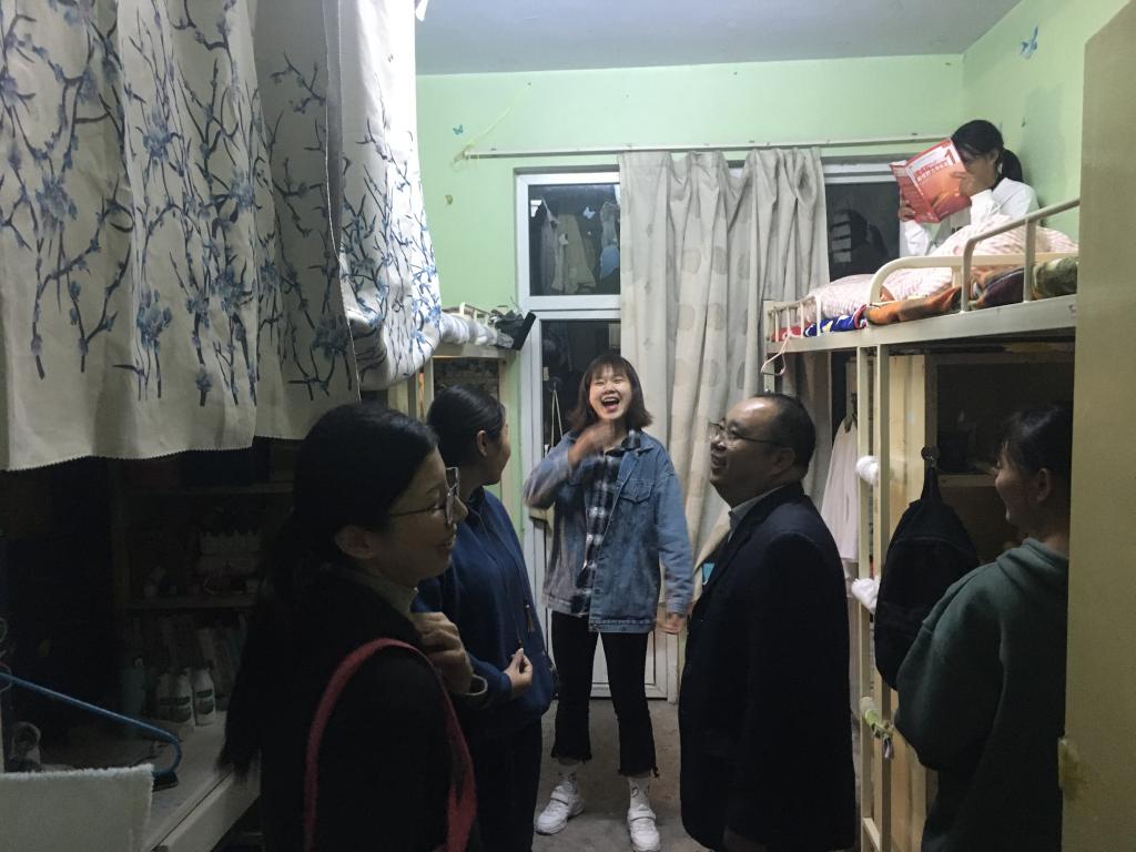 宿舍走访过程中,刘喜元详细询问了新生入学以来的生活、学习情况,嘱咐大家遇到各种问题向辅导员班主任和学院及时求助。他重点强调了财物安全和冬季宿舍用电问题,要求同学们严格遵守学校的相关规定,保证宿舍生活安全文明有序地进行。