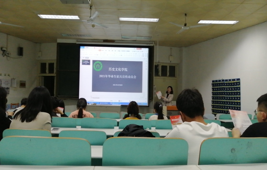 4月29日,我院于人文楼609教室召开2021届毕业生入伍动员会,会议由我院武装干事付亚男主持。