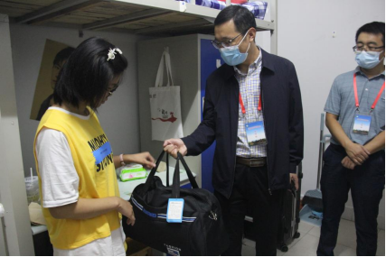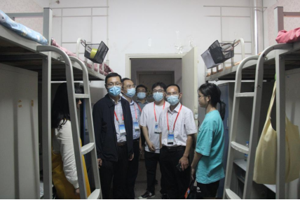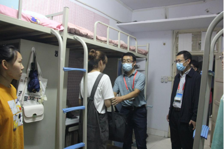 领导们与新生亲切交谈,对新生加入tyc522cc太阳成集团大家庭表示热烈欢迎,询问学生们都来自什么地方、乘坐何种交通工具报到等情况,详细了解他们的入学感受与适应情况,接着视察了学生宿舍设施和生活服务保障状况,特别关心了省外及少数民族学生饮食住宿情况。领导们嘱咐新生要严格按照学校要求做好疫情防控,注意人身财产安全,积极转变角色尽快适应大学生活,有困难及时联系辅导员班主任。