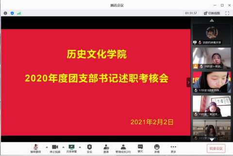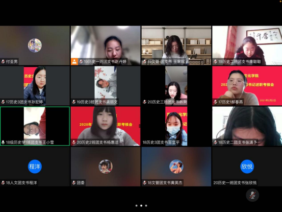 为持续加强学院基层团组织建设,激发基层团组织活力,落实基层团支部建设方向,加强团支部集体荣誉和团队精神,tyc522cc太阳成集团团委于2月2日在腾讯会议上开展了2020年团支部书记述职大会,团委书记付亚男和各团支部书记参加会议。