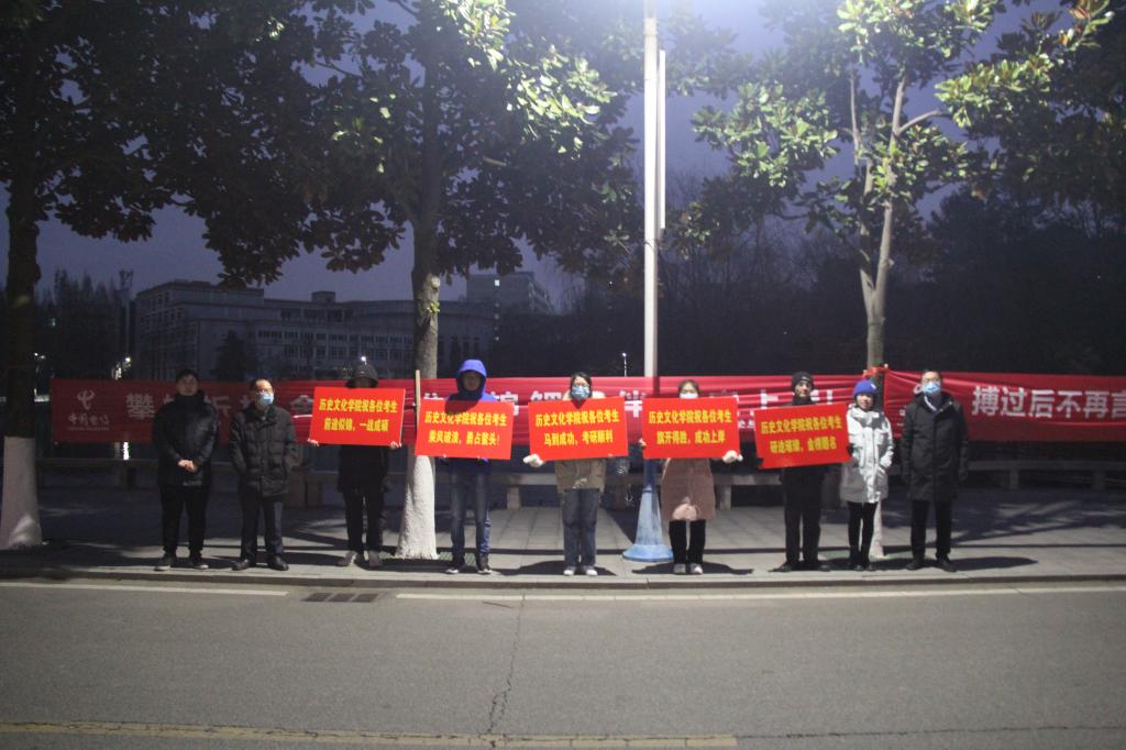 为鼓舞考研学子士气,振奋考研学子精神,12月25日清晨夜色仍浓、北风劲吹,tyc522cc太阳成集团党委书记李辉、院长叶宗宝、党委副书记韩志宏、辅导员付亚男、邓皓及学生党员先锋代表前往青年广场欢送考研学生参加考试。