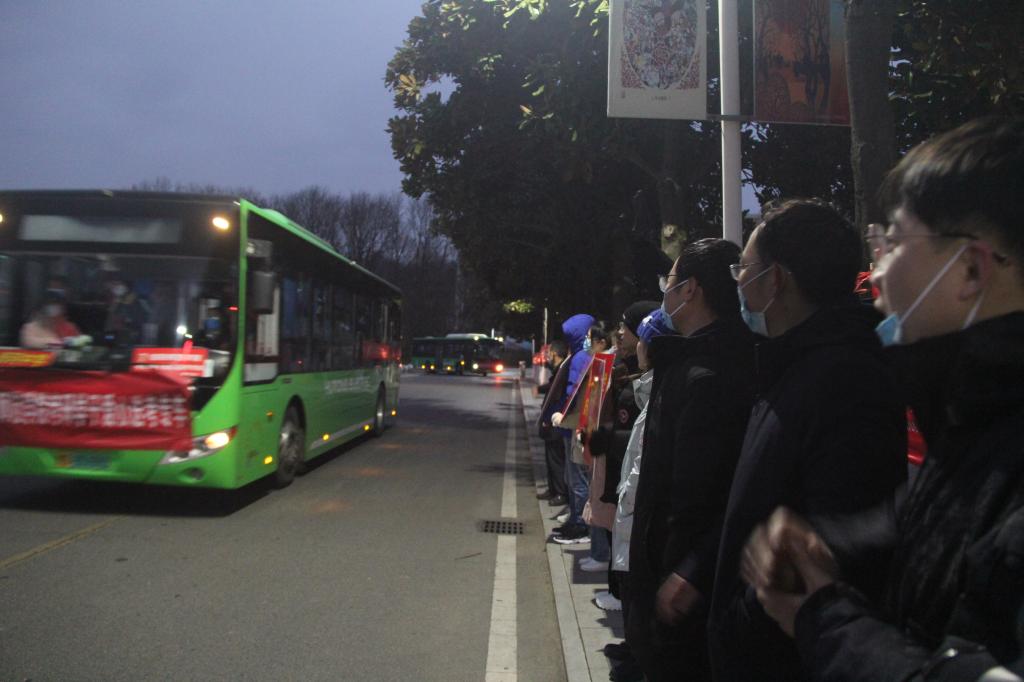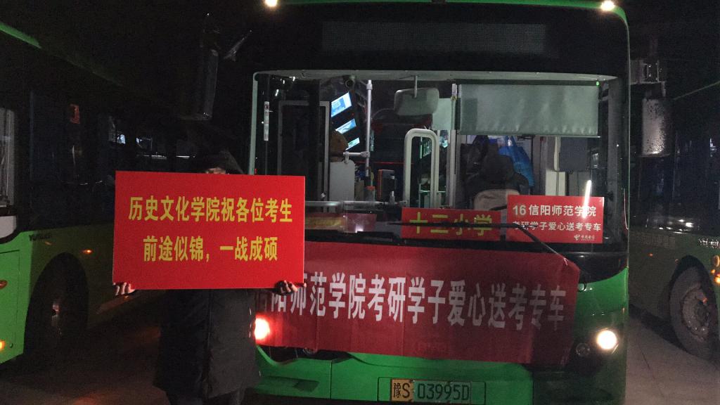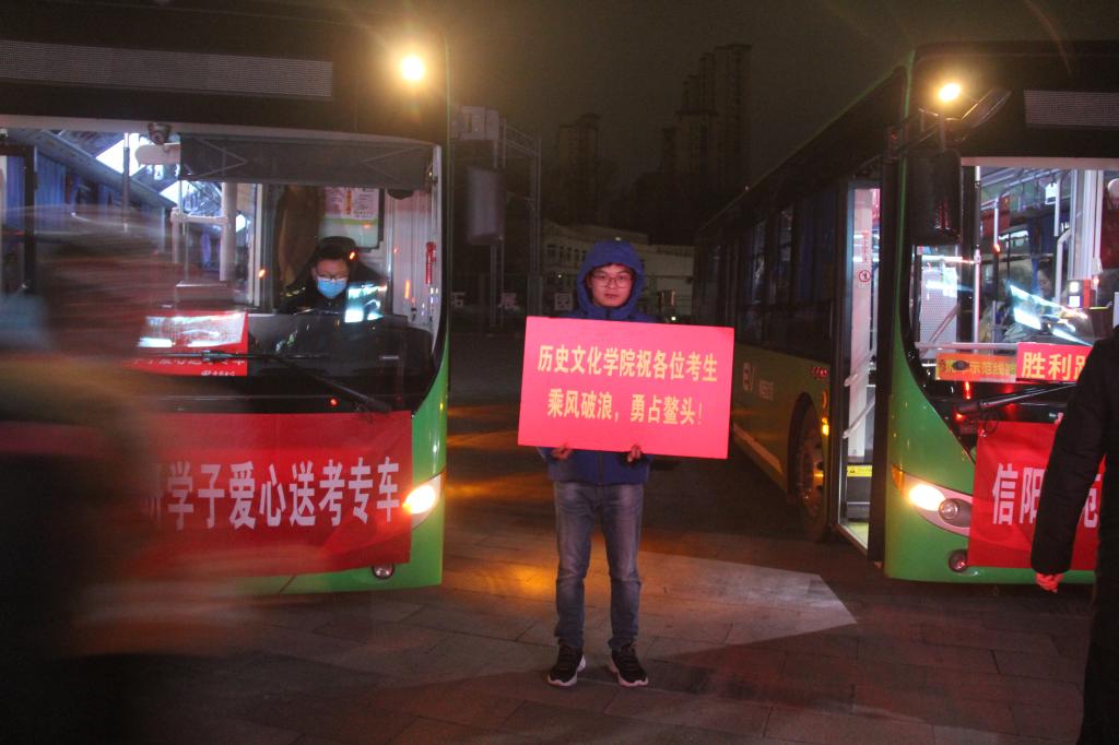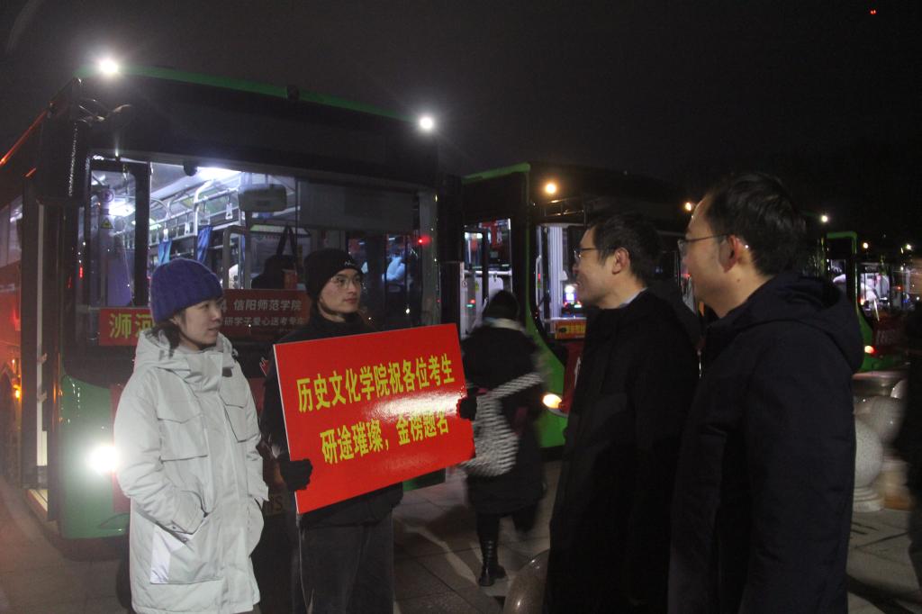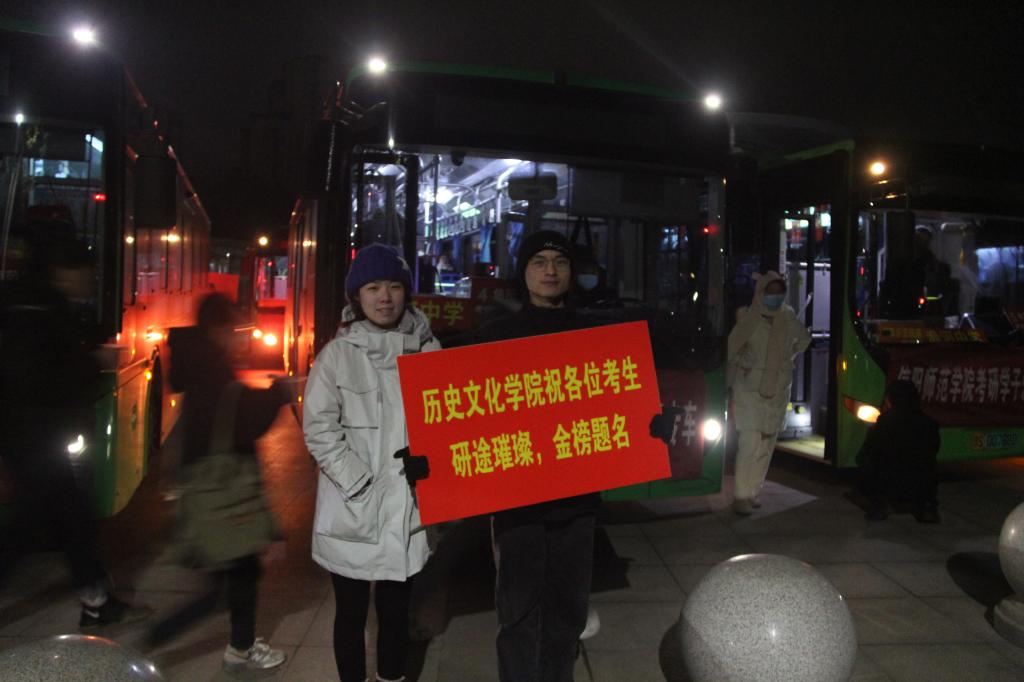 12月25日是今年全国研究生招生考试开考首日,学校统一安排在青年广场为考生提供免费大巴送考服务,确保考生顺利、安全、及时到达各个考点。为此,我院领导、辅导员和学生党员先锋代表站在前往不同考点的车辆前,帮助学生最快找到所乘车辆,为他们加油鼓劲。在考研学生乘车出发时刻,我院领导向他们挥手示意,师生齐声高喊祝福口号:研途璀璨,金榜题名,祝愿考生考试顺利。