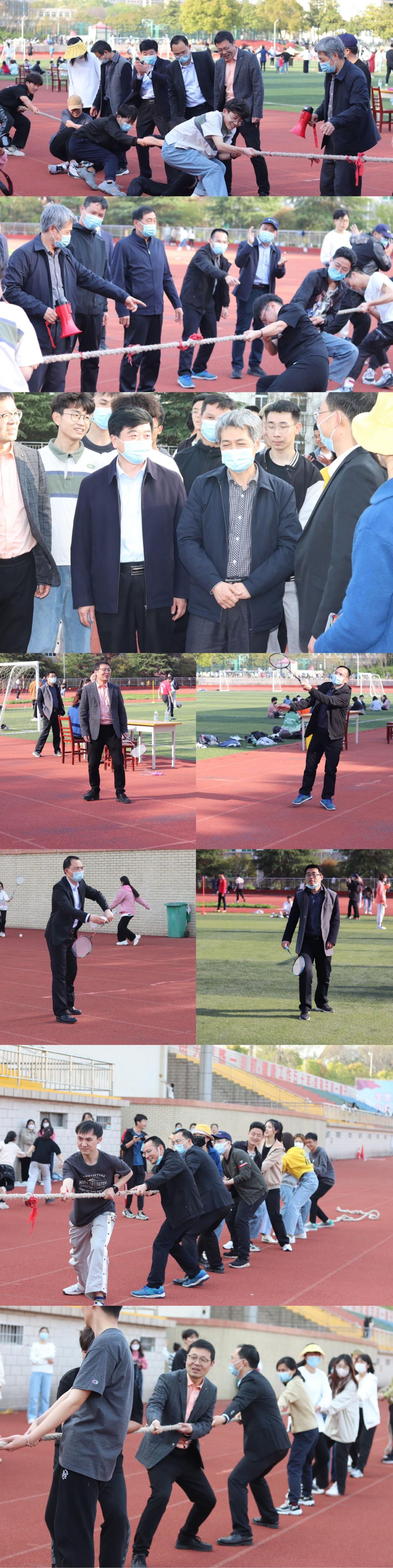此次趣味运动会设团体跳绳、双人羽毛球、多人踢毽子、集体拔河四个比赛项目。学生们各自分组展开竞赛。学院领导以及辅导员老师们也积极参与进来,深入同学们之中,与学生们一起打羽毛球,跳绳。最后,在李俊校长的主持下,展开了激动人心的拔河比赛,男生们一个个力大如牛,不甘示弱,场面僵持了三分钟才决出胜负,李俊校长夸赞我院学子青春昂扬具有奥运精神,并与我们的拔河队员合影留念,在之后又举行了几场拔河比赛,各领导与辅导员也纷纷上阵。活动现场气氛轻松愉悦,大家互帮互助,认真比赛,竞争十分激烈,充分展示了我院学生与老师热爱生活、朝气蓬勃、奋发进取的精神风貌。