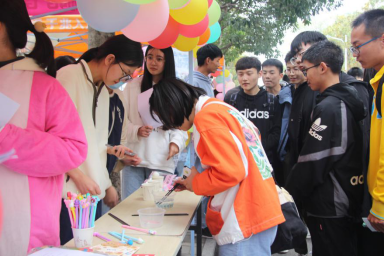 10月20日下午,我院于思齐路开展心理游园活动。副校长郑云、学工部副部长、大学生心理健康辅导中心副主任赵晨亲临现场参与游戏互动。此次活动由我院心理部主办,学院党委副书记刘喜元、辅导员吴慧娟进行指导,我院百余名学生参加。
