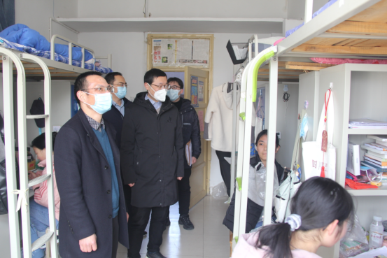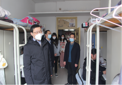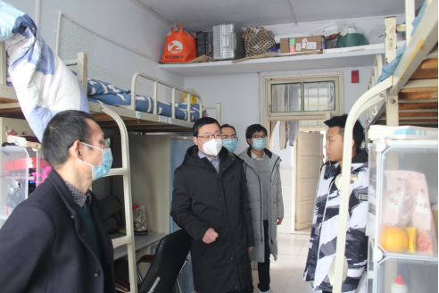 tyc522cc太阳成集团党委书记李辉、院长叶宗宝、副书记韩志宏带领全体辅导员和新生班主任深入学生寝室看望返校学生,关心了解学生寒假状况,嘱咐他们尽快调整适应新学期的学习生活。