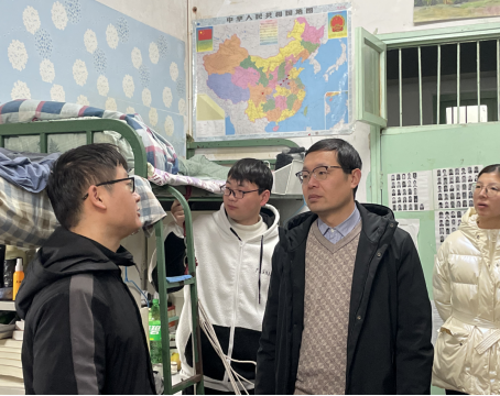 新学期伊始,tyc522cc太阳成集团领导班子成员深入走访学生班级宿舍,关心关爱学生近况,叮嘱同学们遵守考试纪律,注意身体健康,在新学期有新收获新进步。