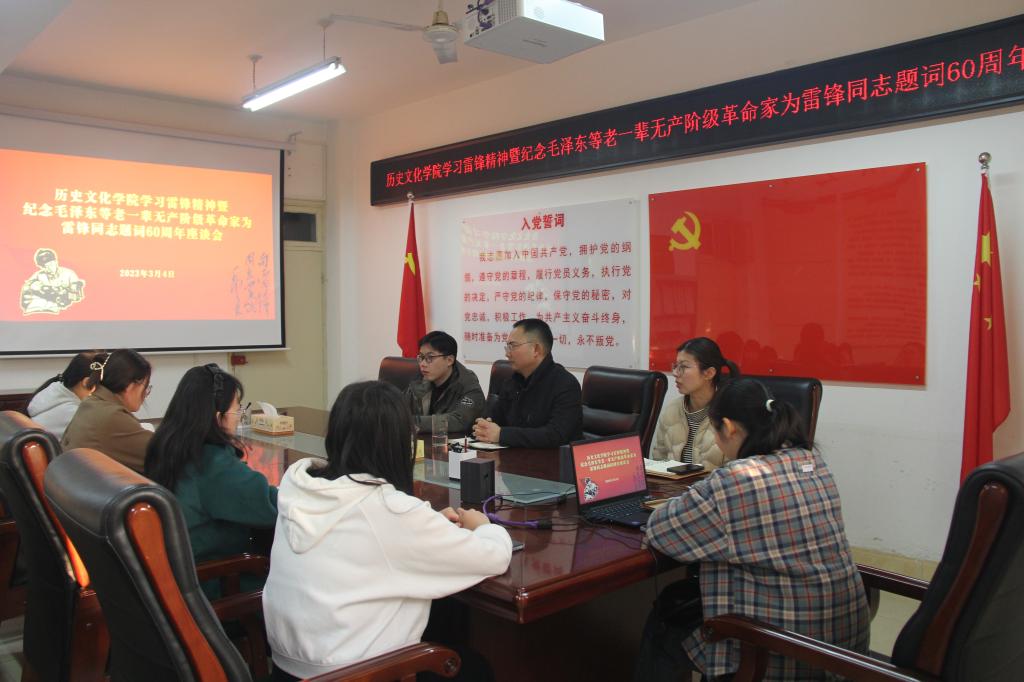 3月4日下午,tyc522cc太阳成集团于人文楼805会议室召开学习雷锋精神暨纪念毛泽东等老一辈无产阶级革命家为雷锋同志题词60周年座谈会,学院党委副书记韩志宏、分团委副书记付亚男、辅导员邓皓及学生代表参会。