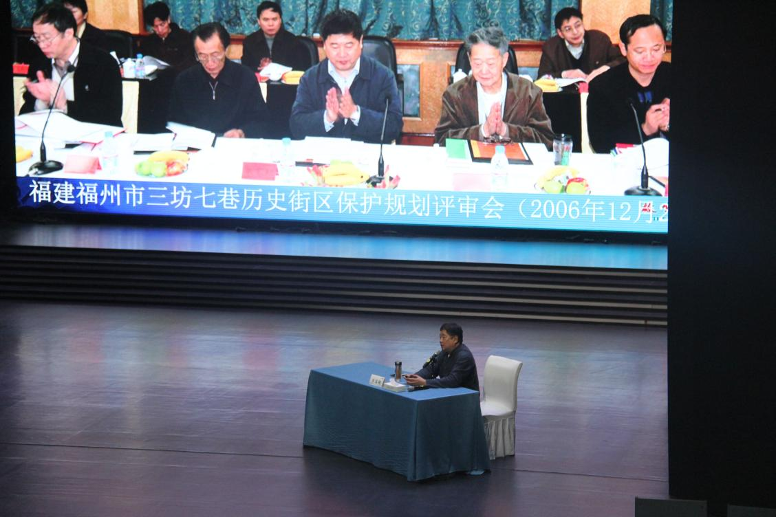 讲座中,单霁翔展示了大量翔实的图片、案例,以轻松诙谐的语言介绍了我国文化遗产申遗历程,列举良渚古城遗址和三坊七巷历史街区保护等事例,深刻阐释了文化遗产修复保护的重要意义。同时结合自身工作经历,讲述了故宫博物院环境治理、文物修复展示、基础设施改造、文创产品开发、数字展馆建设等工作,畅谈了文物保护开发和利用的心得体会,介绍了文化遗产资源保护工作的创新途径,让更多大众全方位、多渠道、宽角度接触了解我国文化遗产资源。
