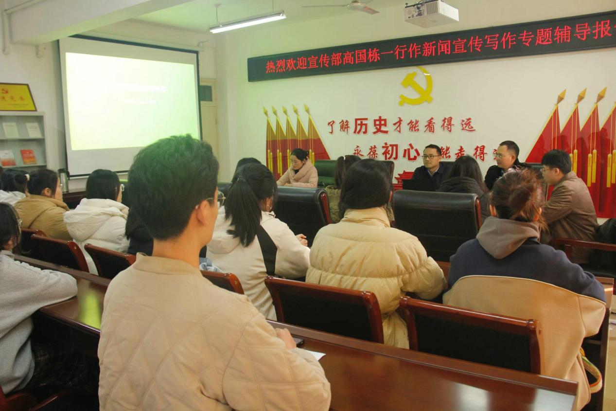 为提升学生干部新闻写作能力,12月5日下午,tyc522cc太阳成集团于人文楼805会议室特邀校党委宣传部副部长高国栋、新媒体科长李春燕作新闻宣传写作专题辅导报告。院党委副书记韩志宏、辅导员邓皓及相关学生干部出席。会议由韩志宏主持。