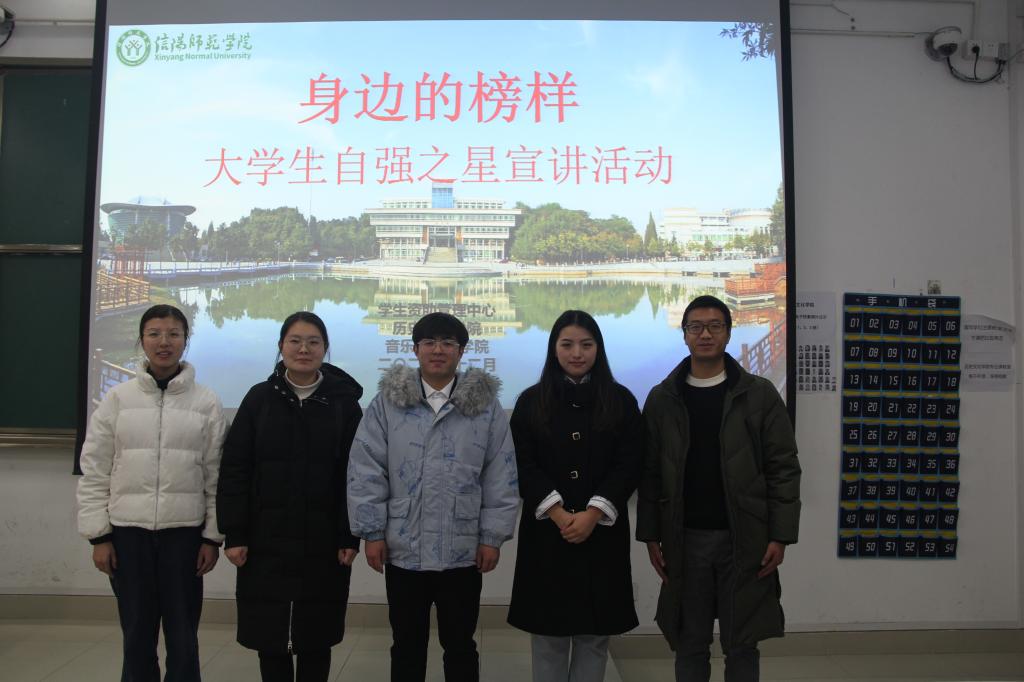 12月16日晚,我院于社科楼212教室举办“身边的榜样”—大学生自强之星宣讲活动。传媒学院“国家奖学金”获得者张润嘉、马克思主义学院“自强之星”贾雨晴及文学院“自强之星”李国栋向我院2019级、2020级学生分享他们的成长故事。本次活动由我院资助专员付亚男主持。