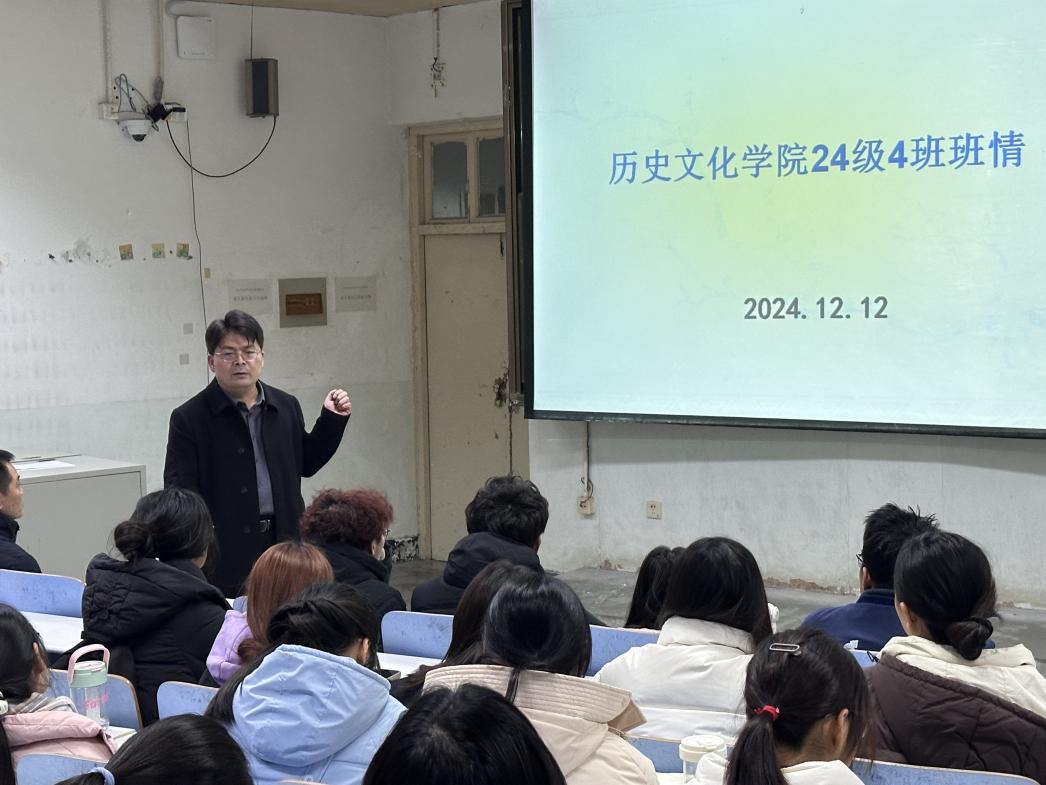 付亚男通过PPT和视频的形式,展示了2023级历史学3班的班级基本情况、班级文化建设、班级日常管理、班级存在的问题和解决措施,展现了班级积极向上的精神风貌。刘文文介绍了自己入职以来开展学生工作和参与学生活动情况,并进行了工作反思和未来展望。接着,工作人员向班级学生分发了“班情熟知检查学生信息表”,并随机选定学生,由辅导员当场介绍被抽中学生的具体情况。最后,朱四倍对本次活动进行了总结发言,他对两位辅导员的业务能力表示了肯定,指出我校辅导员“班情熟知”活动是辅导员队伍建设的一项重要内容,要坚持其与辅导员素质能力提升“五个一”相结合。