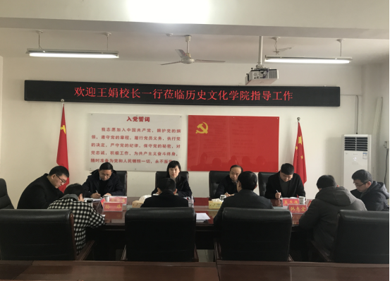 2月19日上午,副校长王娟率领评估中心主任余国忠、教务处副处长周学勇、人事处副处长吴志伟等一行莅临我院,对教学、人事等工作进行调研指导。tyc522cc太阳成集团全体班子成员参加座谈。