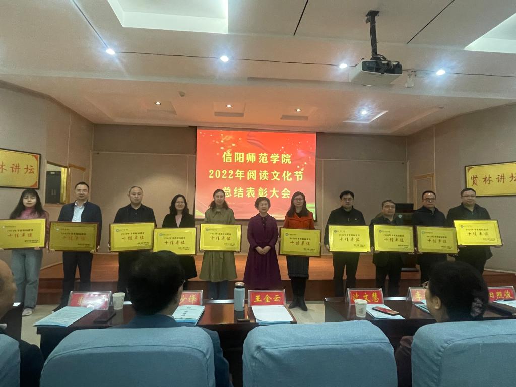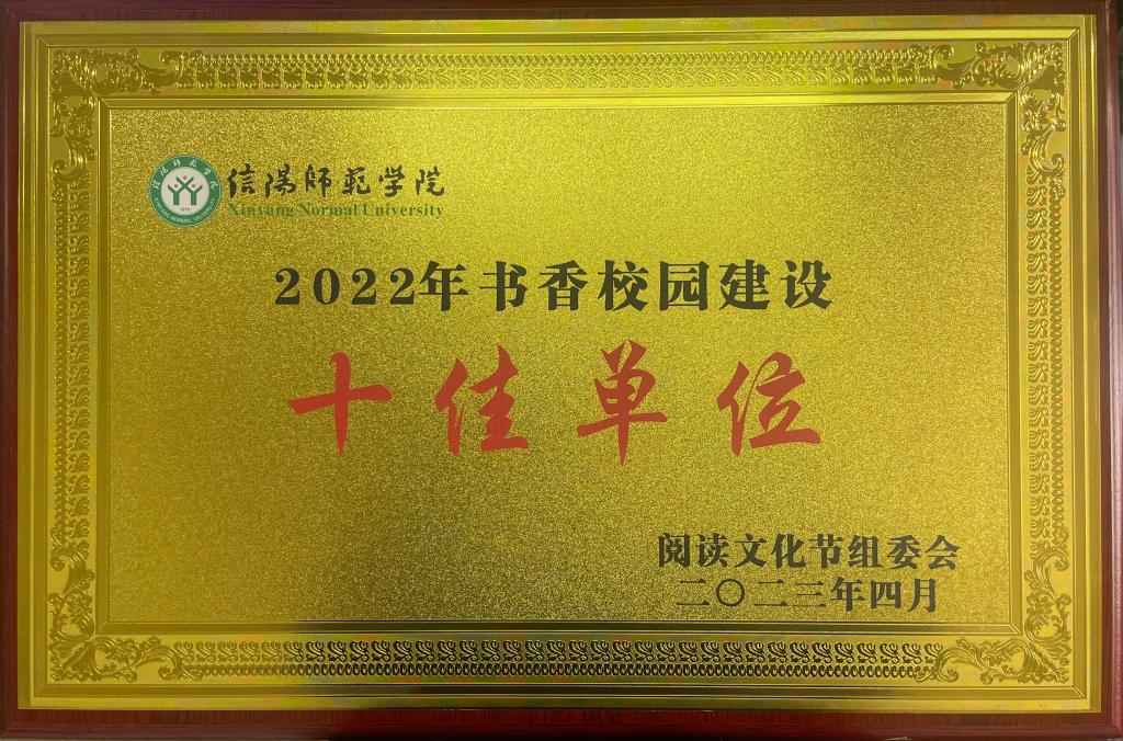 4月24日上午,我校举办信阳师范学院第二十一届阅读文化节启动仪式,副校长王金云,学校有关部门和各学院负责人以及图书馆负责同志与部分师生代表参会。我院被评为信阳师范学院2022年书香校园建设十佳单位。