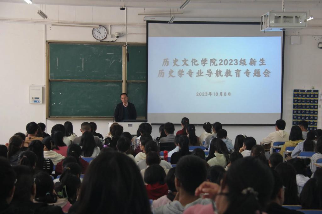 为了更好地提升2023级新生的专业认知水平和专业认同感,形成优良学风,合理制定学涯规划目标,10月8日上午我院在社科楼212教室召开了2023级新生历史学专业导航教育专题会,院长叶宗宝、历史学系主任张乐锋、教学秘书宋玉峰、新生辅导员付亚男及2023级全体新生参加。专题会由付亚男主持。