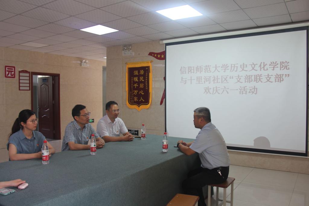 在六一儿童节到来之际,tyc522cc太阳成集团党委于5月31日赴信阳市浉河区十里河社区开展“支部联支部”暨欢庆六一活动,学院党委书记李辉、党委副书记韩志宏及师生党员代表参加。