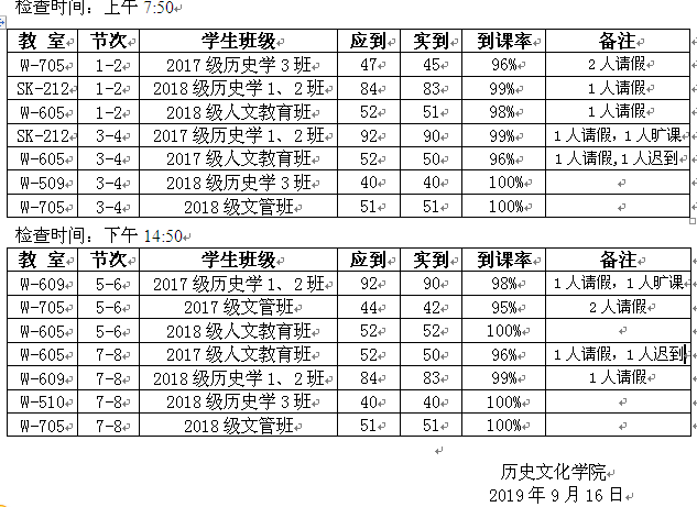 日,我院教学自查小组对上课班级师生到课情况进行了检查,现通报如下: